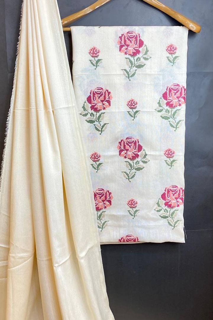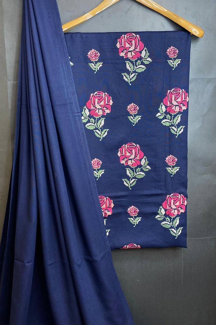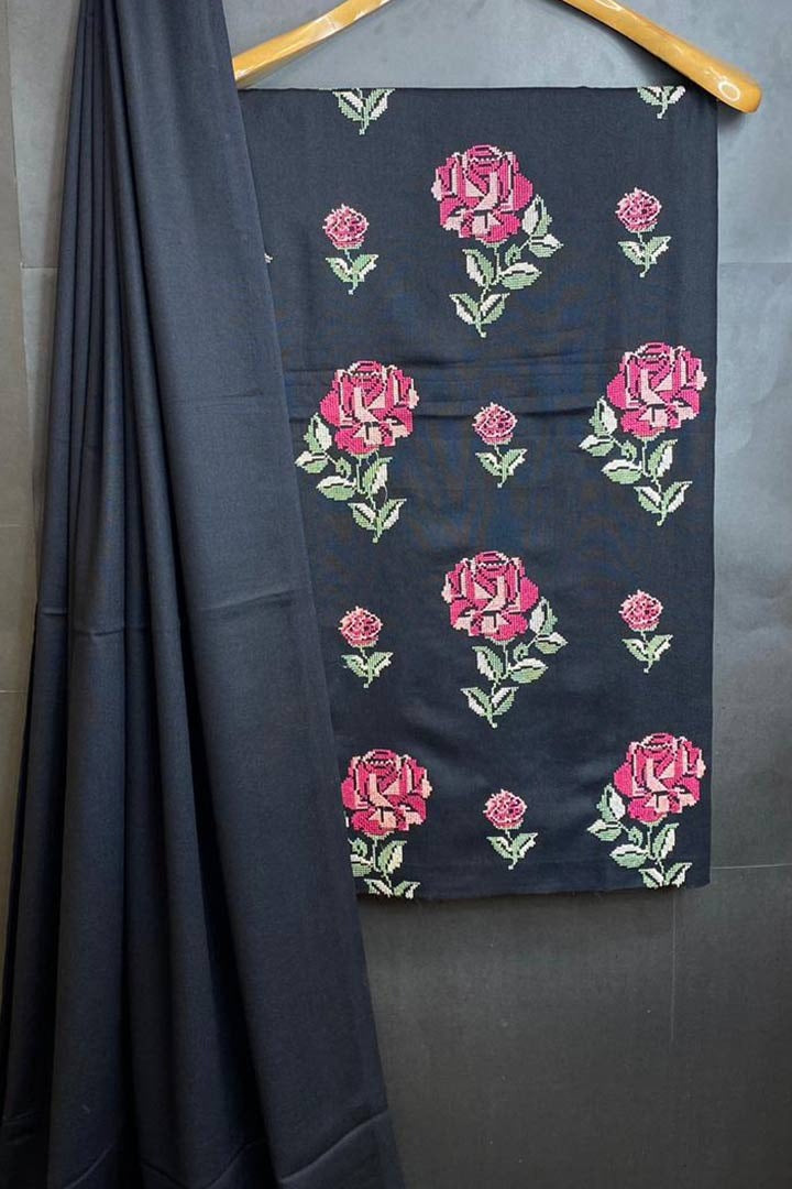 Pure Karandi Shirt front with Cross stich Resham Work