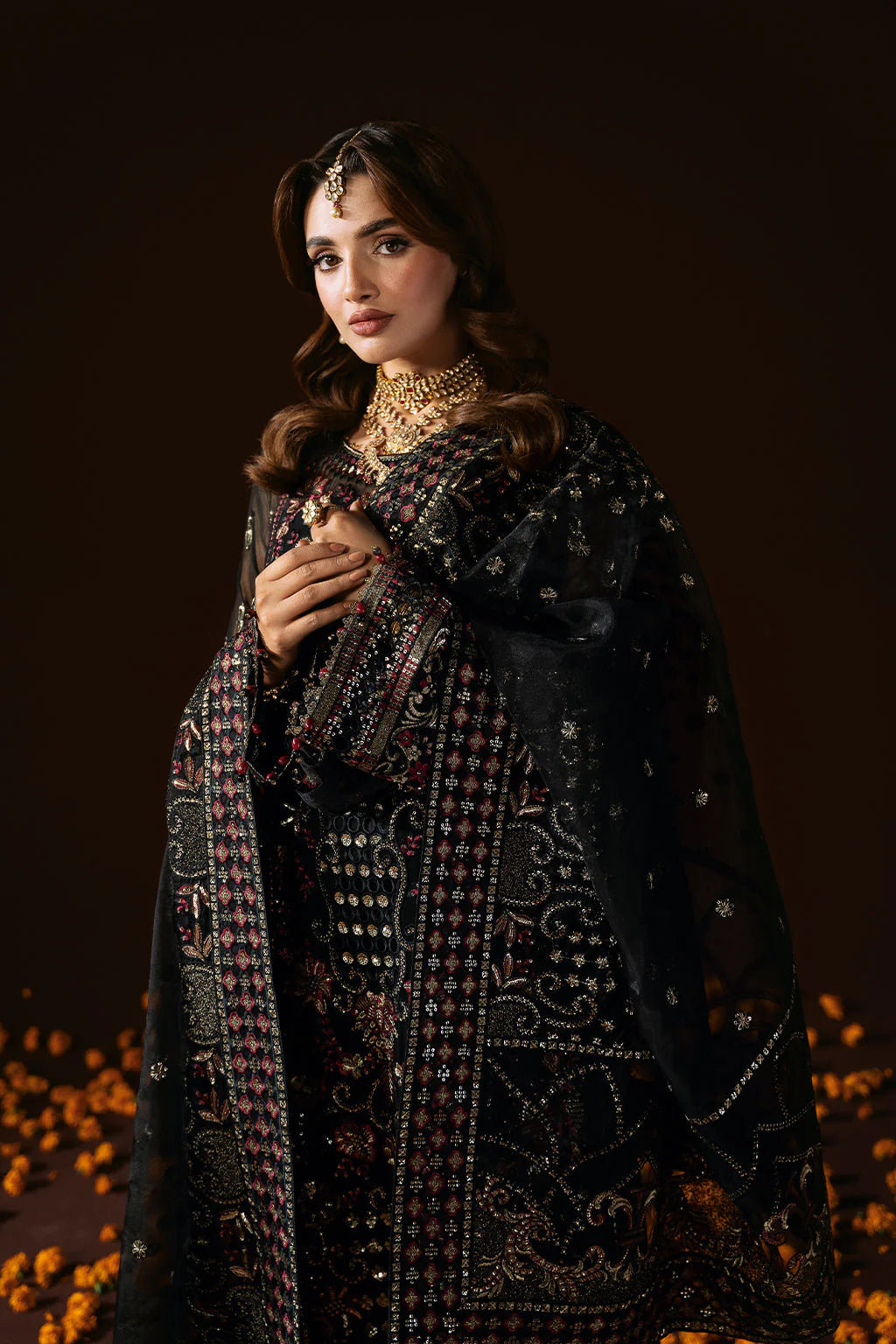 Embroidered Chiffon Back with Sequence