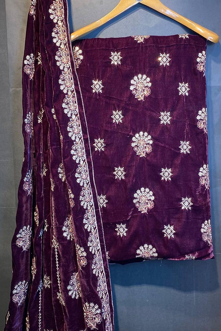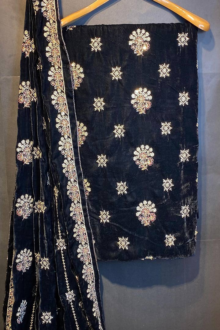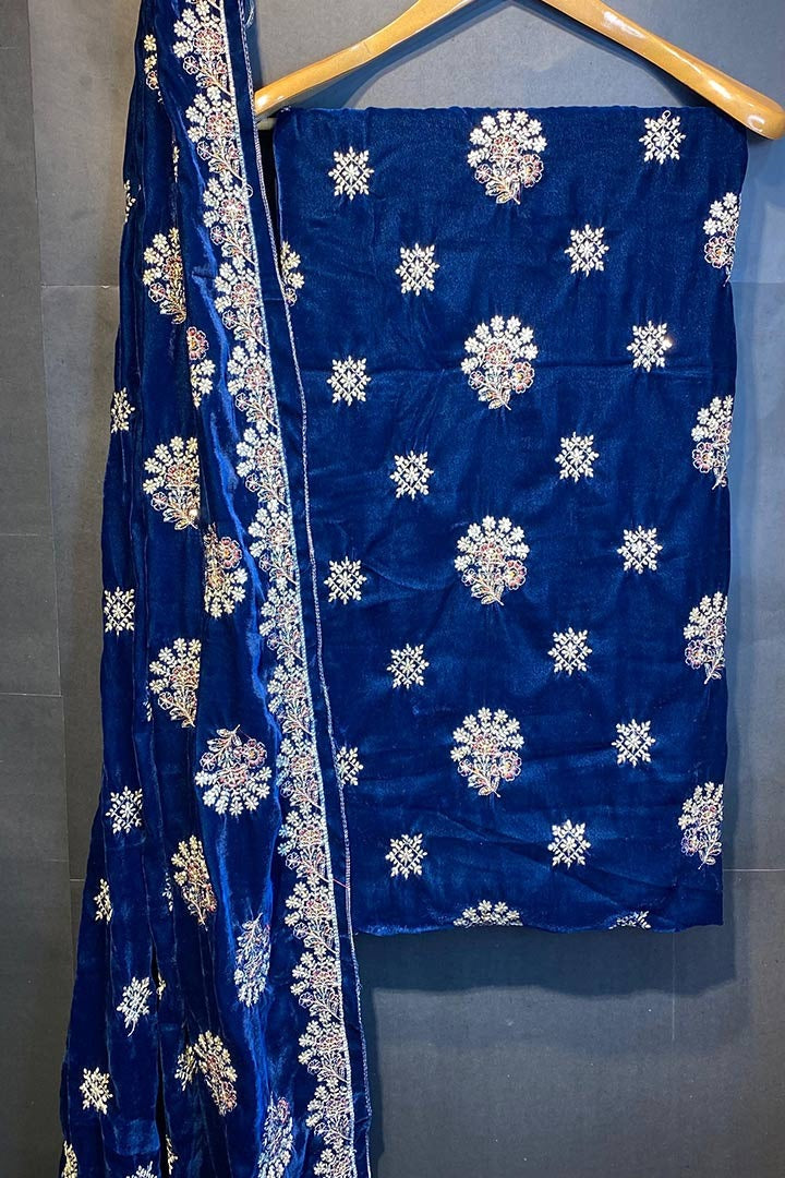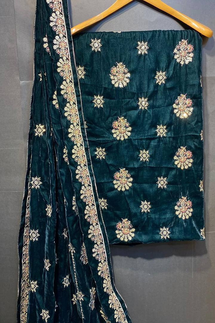 3 yard velvet Shirt And Sleeves Secquice And Multy Thread And zari Work