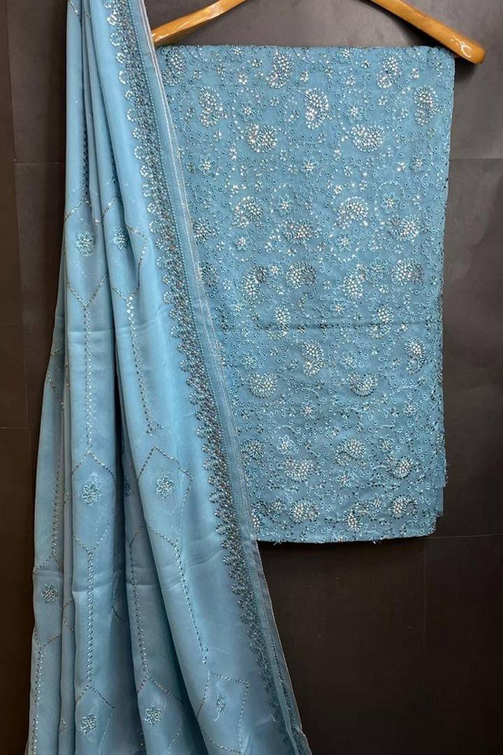 Crinkle Chiffon Full Embroidry Work With Lite Scequince Work Shirt Front