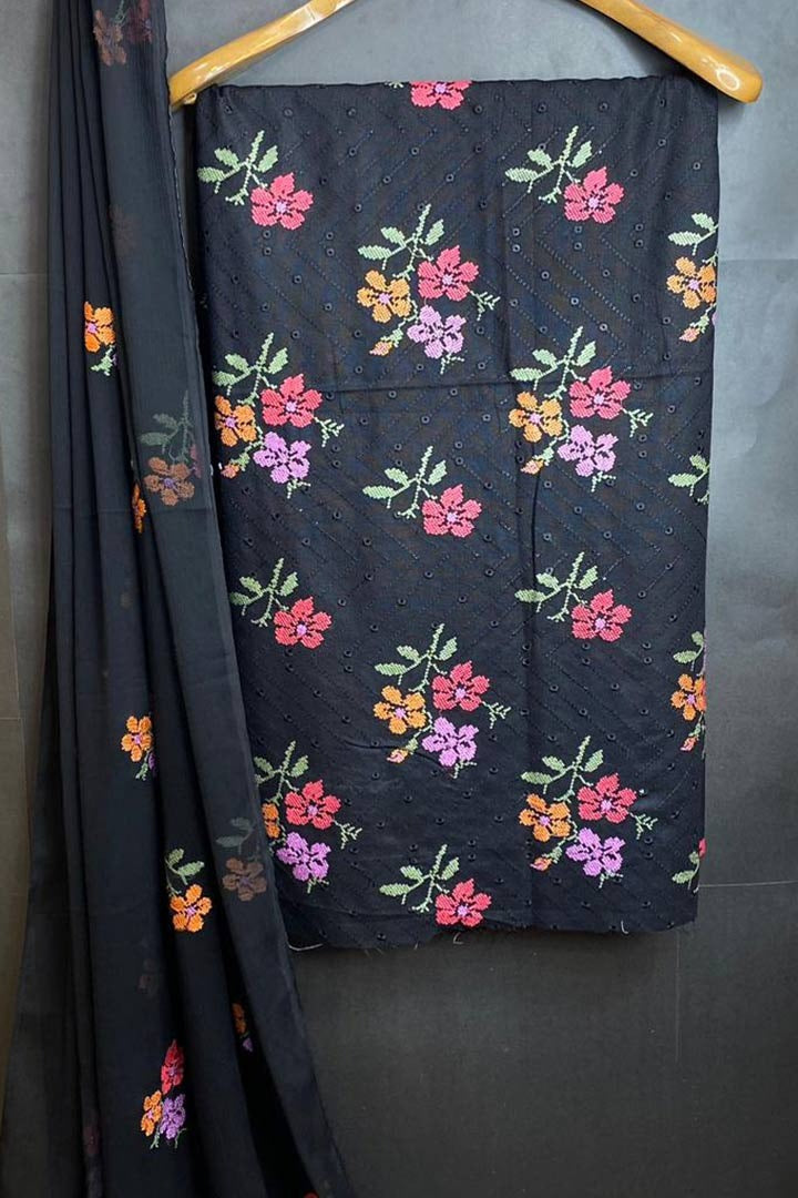 Pure Karandi Back And Seleevs Embroidry Motifs
