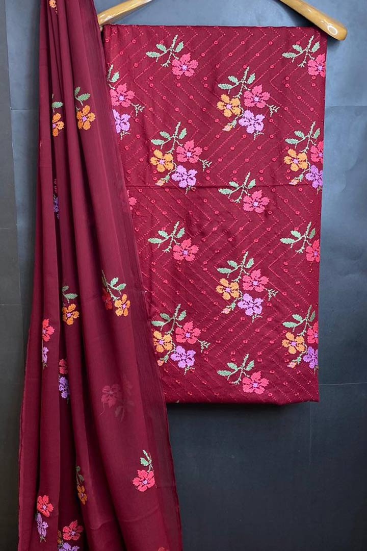 Unstiched / Mehroon - Rs.4,500.00 PKR
